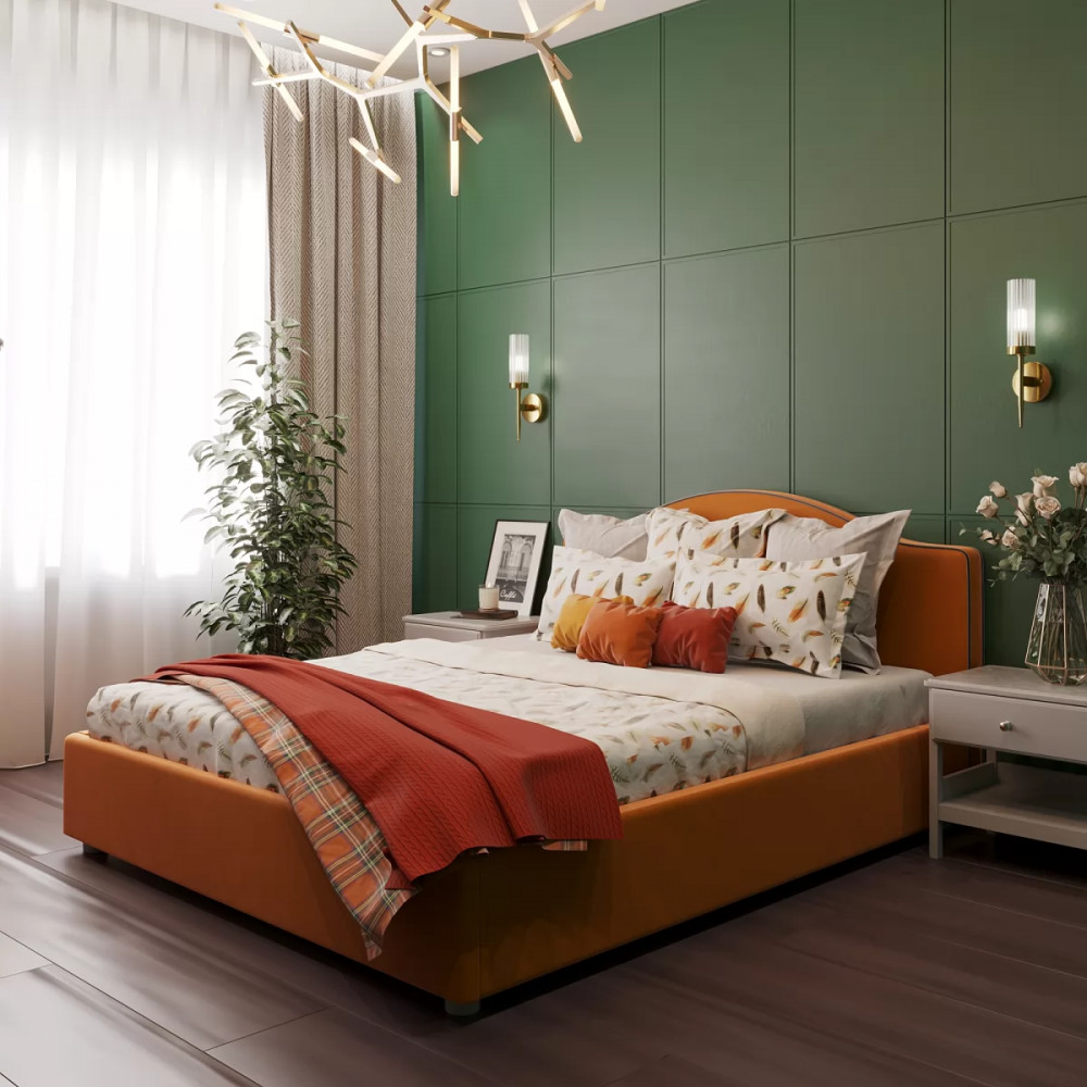Сейчас в Европе популярны лаконичные и одновременно элегантные изголовья. Такая кровать идеально впишется в любое интерьерное решение.