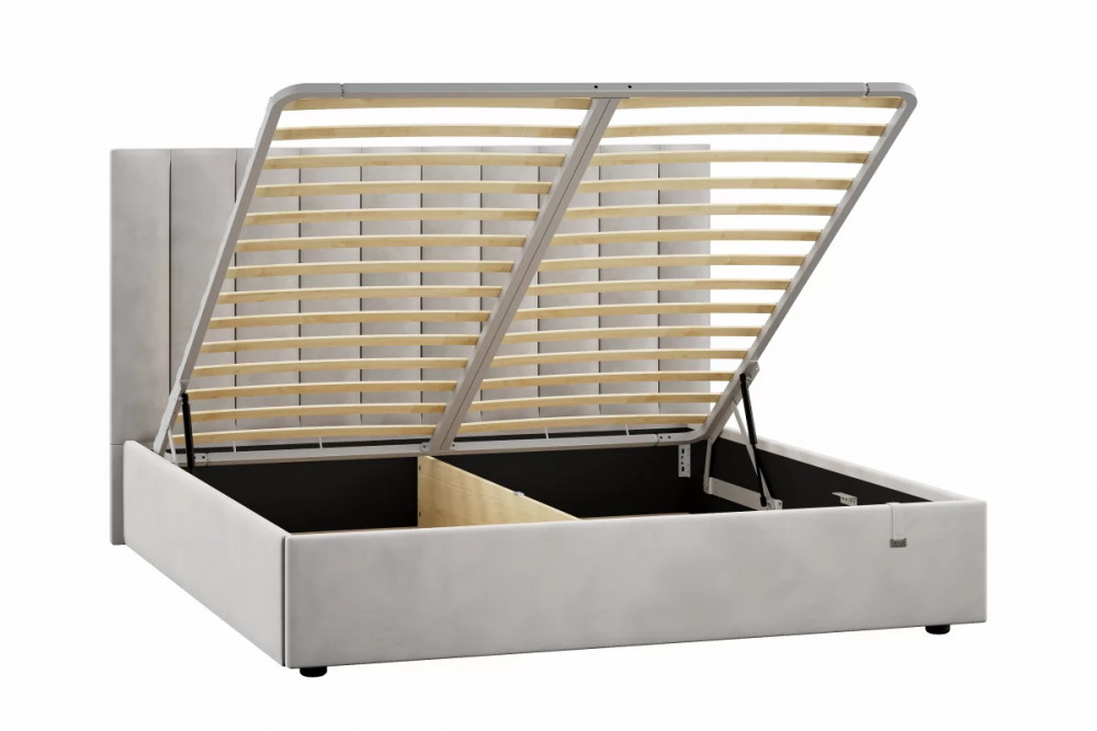 Подъемный механизм легок в управлении, а вместительный короб внутри кровати подойдет для хранения подушек, белья и других вещей. Мягкие тканевые ручки облегчают процесс подъема основания.