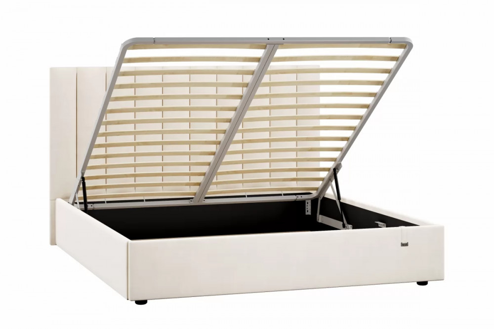 Подъемный механизм легок в управлении, а вместительный короб внутри кровати подойдет для хранения подушек, белья и других вещей. Мягкие тканевые ручки облегчают процесс подъема основания.