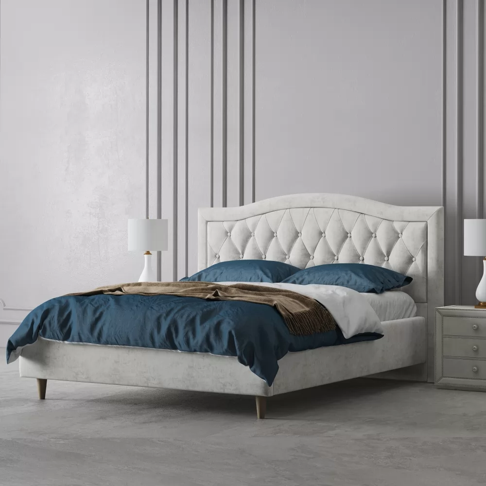 Интерьерная кровать с каретной стяжкой на ножках - это элегантный элемент интерьера, который сочетает в себе стиль и комфорт.