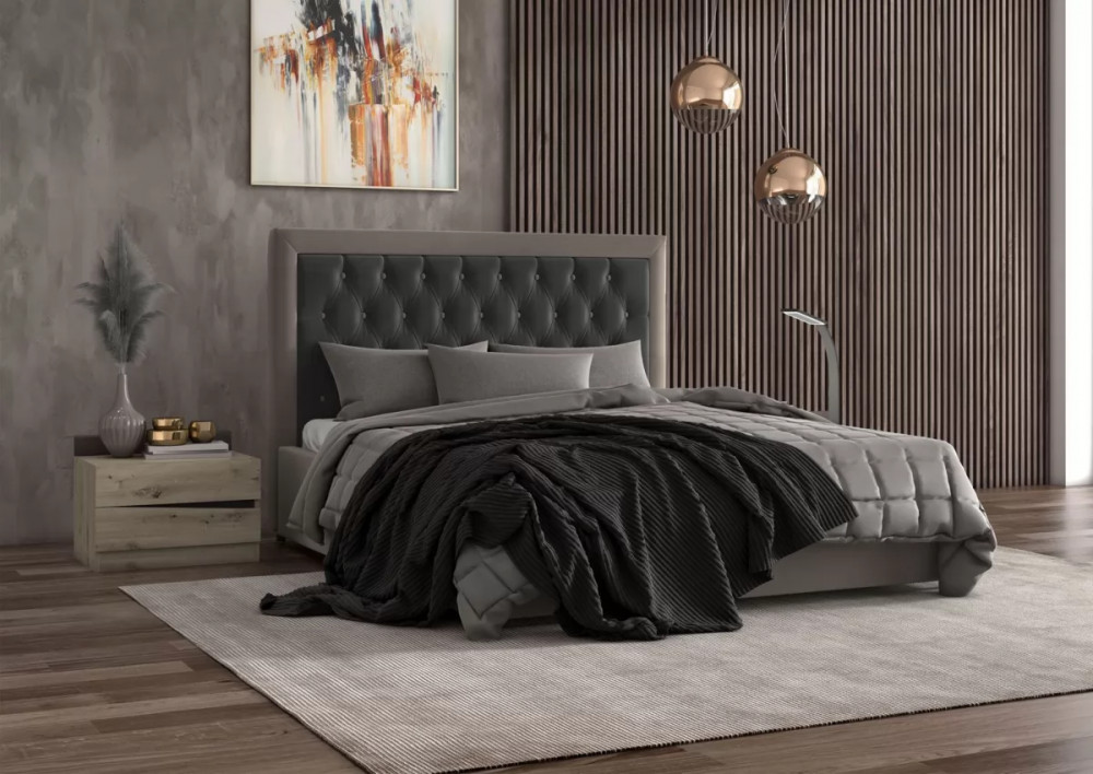 Эффектная, комфортабельная и элегантная - все это об интерьерной кровати Мартина. В первую очередь обращает на себя внимание ее высокое изголовье - оно придает поистине королевский масштаб этой модели. Для отделки используются прочные материалы с отличными эксплуатационными характеристиками. Эта кровать одинаково эффектно будет смотреться и в спальне небольшой квартиры, и в загородном доме.