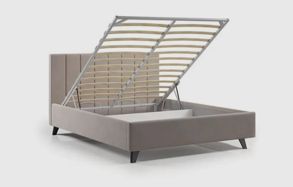 Кровать комплектуется ортопедическим основанием "Профи" с подъёмным механизмом и бельевым ящиком.