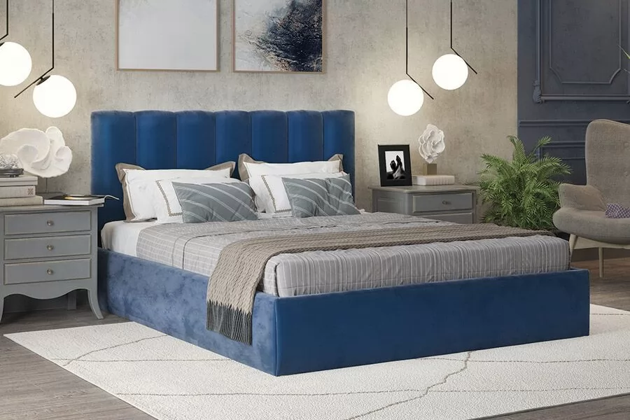 Кровать Элен 1400*2000 мм, велюр NEO 27, синий в Нягани