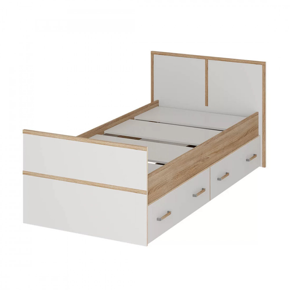 БЕАТРИС КР 900 Кровать (с/м 900*2000мм), дуб сонома/белый глянец НАСТИЛ