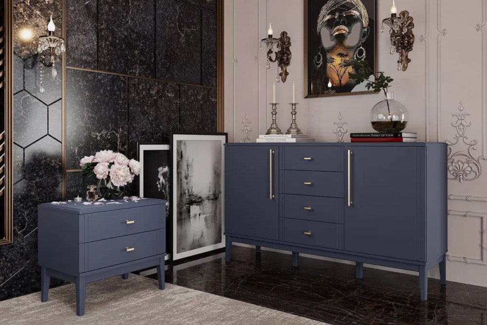 • Комод 4 ящика + 2 двери Джали Ночное небо/Тёмный лазурный