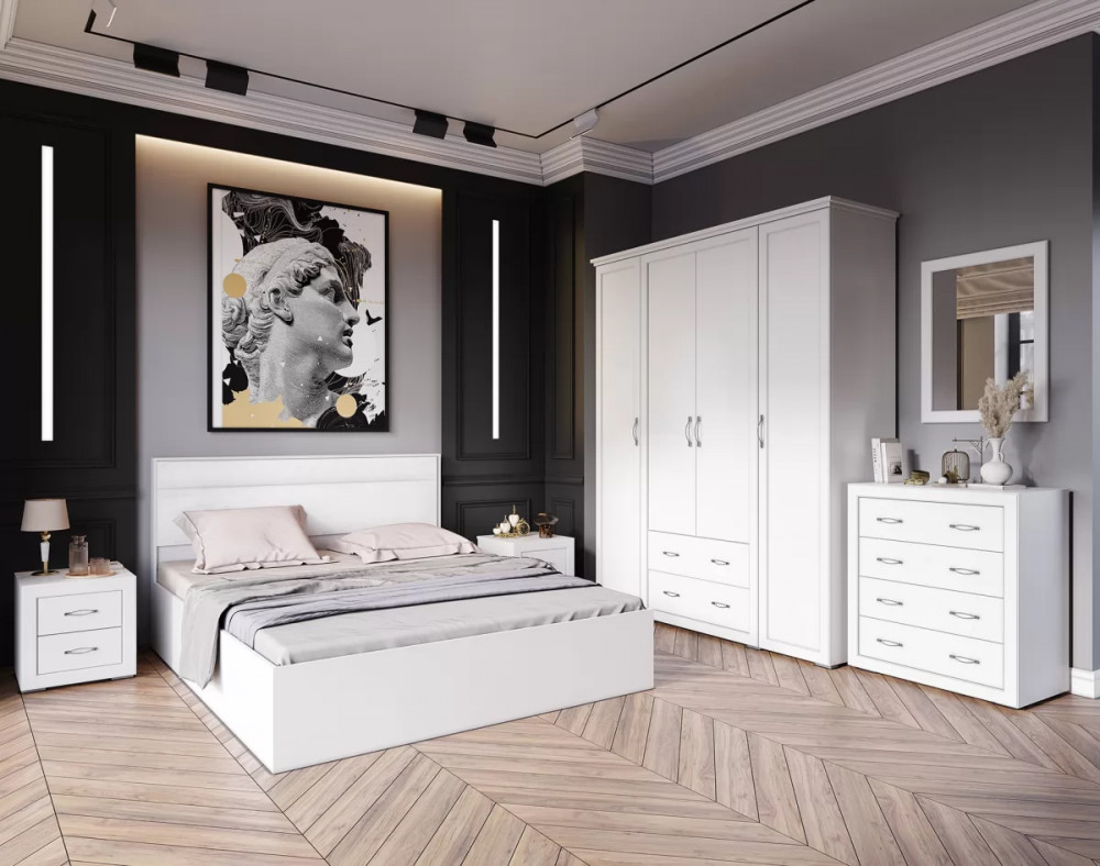 4 варианты основания для кровати: настил из ДСП 2С, настил из ЛДСП, ортопедическое на опорах, ортопедическое с подъемным механизмом и ящиком для хранения белья,