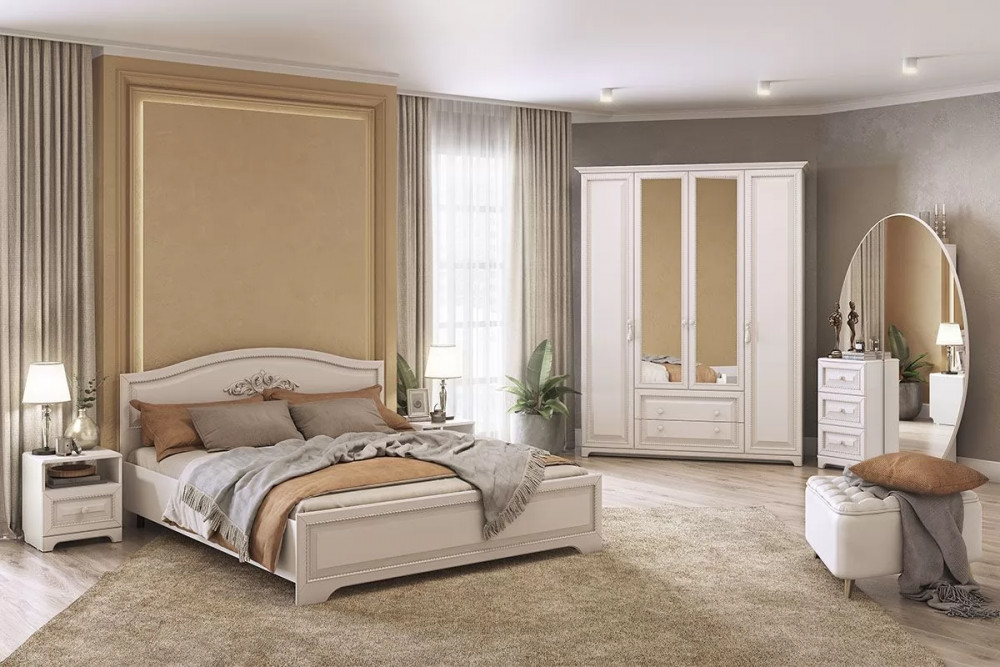 Спальный гарнитур Белла в нежной цветовой гамме. Коллекция содержит самые необходимые элементы для создания уюта и комфорта в спальной комнате.
