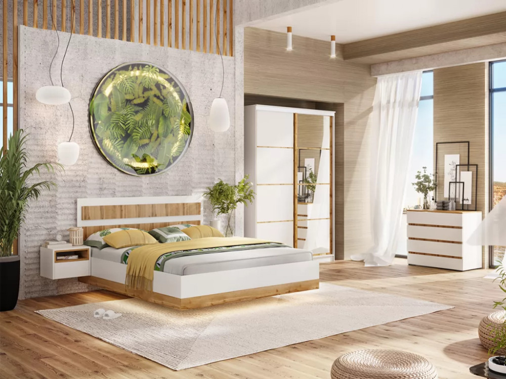 Спальный гарнитур Дубай Белый жемчуг/Дуб Вотан в Нягани