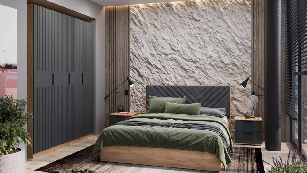 Спальный гарнитур «Хилтон» №2 Дуб Крафт золотой, Графит матовый в Нягани