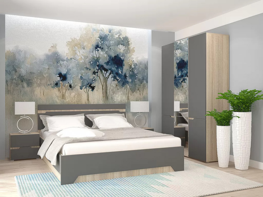 Спальный гарнитур с 3-х створчатым шкафом Анталия Сонома-Графит софт в Нягани