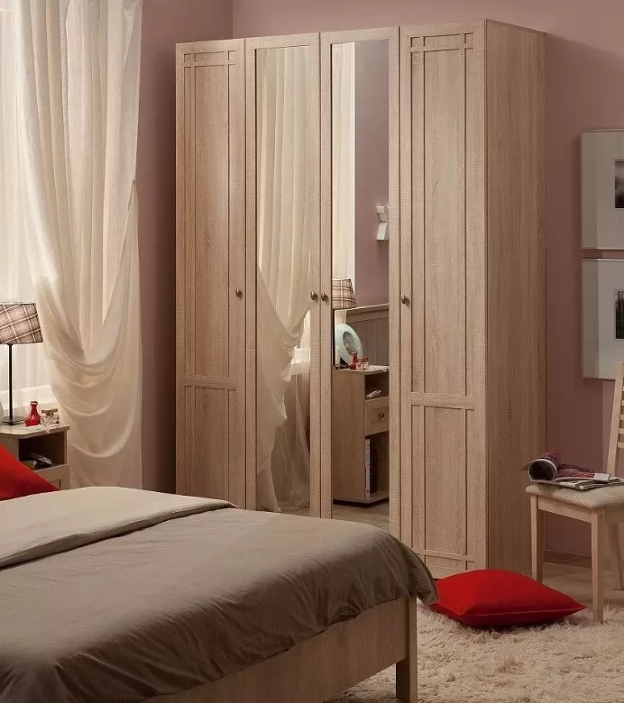 Спальня не музейный интерьер, поэтому здесь должно быть не только красиво, но и удобно. Дополнив еë шкафами из гостиной SHERLOCK, Вы позаботитесь о месте для хранения белья и одежды. Фасад модуля 10 (гостиная) Шкаф угловой выбирайте на свой вкус: с зеркалом или глухой с декоративной раскладкой.