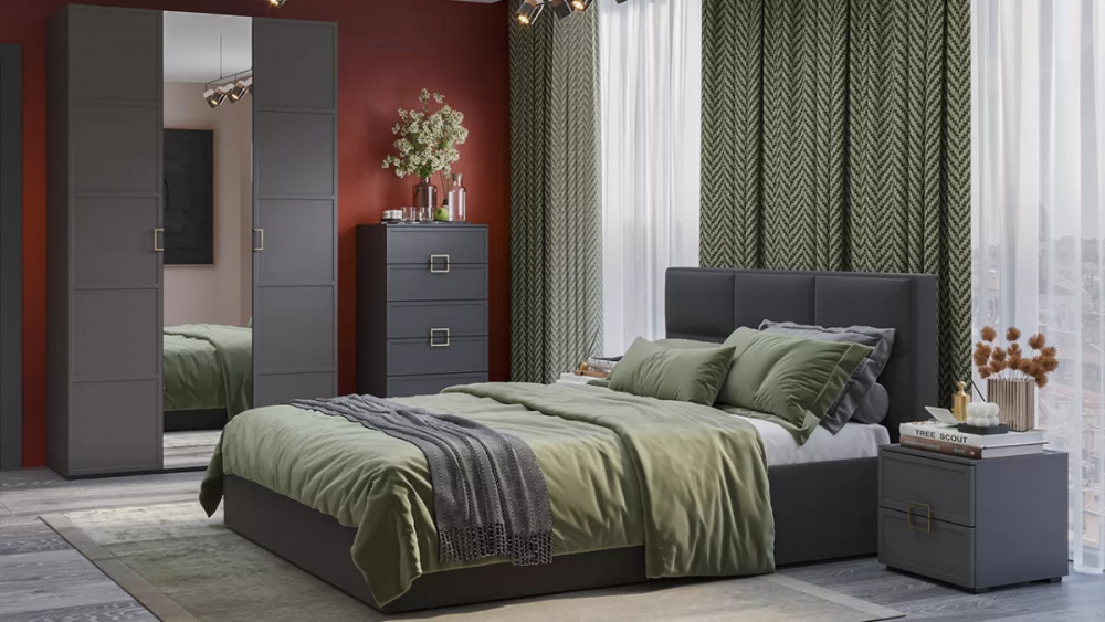 Спальный гарнитур «Стелла» №3 Серый вулкан, Фон серый, Велюр Графит в Нягани