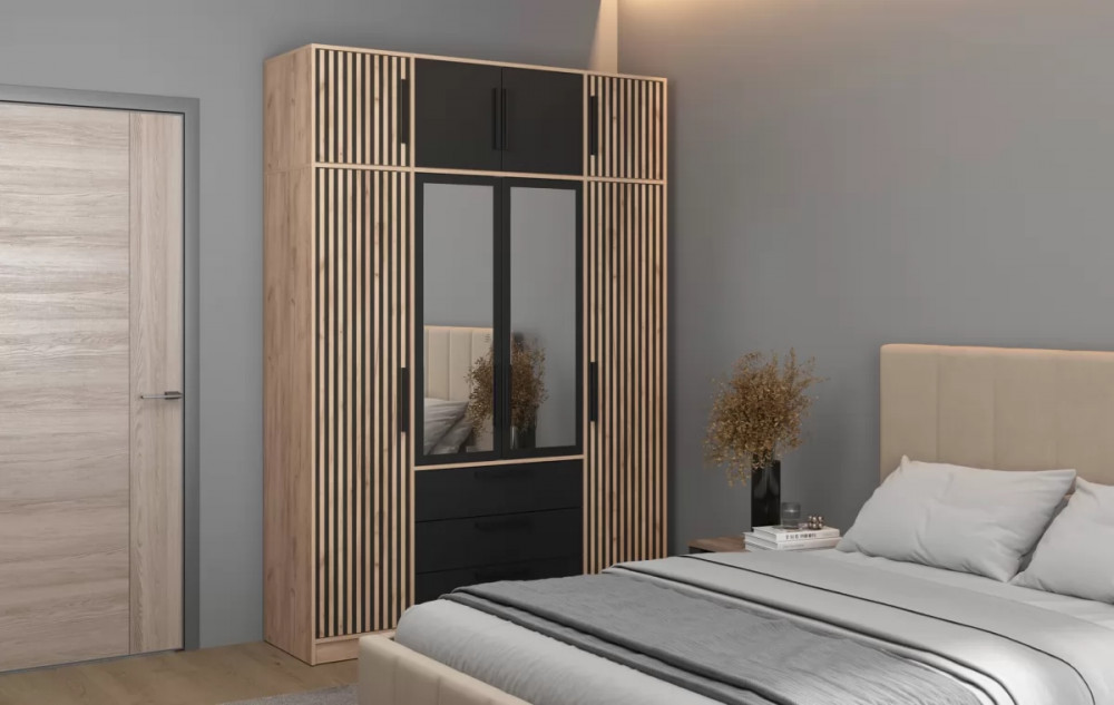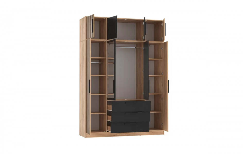 Шкаф для одежды 83.07 Вегас (4-х дв.) с зеркалом (Дуб золотой/черный) 1 шт.