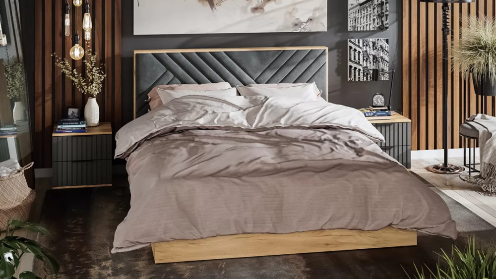 Спальный гарнитур «Хилтон» №1 Дуб Крафт золотой, Графит матовый