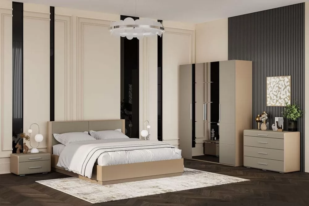 • Вива Шкаф ШР-4 Латте/Текстиль 2 зеркала