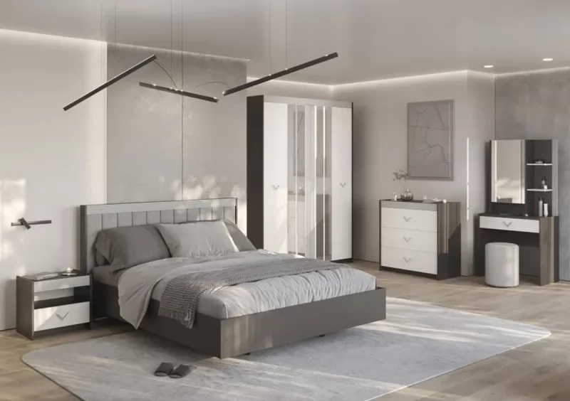 СТЕФАНИ Спальня №1, ЛДСП Графит-МДФ Серый софт/ЛДСП Рамух белый в Нягани
